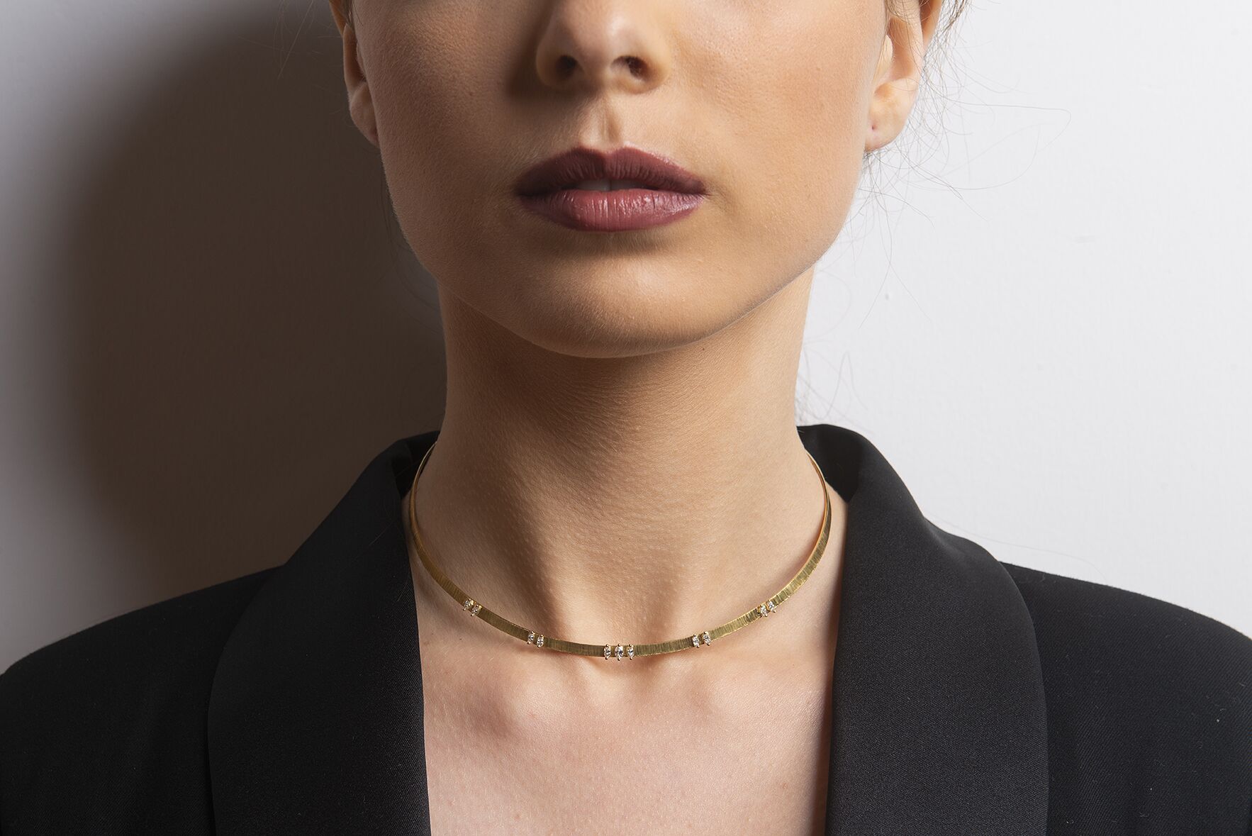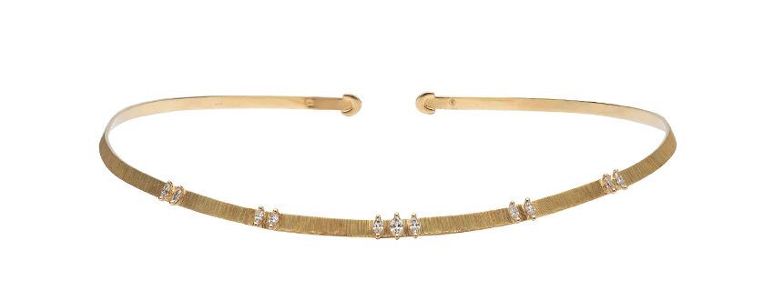 This necklace is handcrafted from 18k yellow gold and set with round diamonds.
