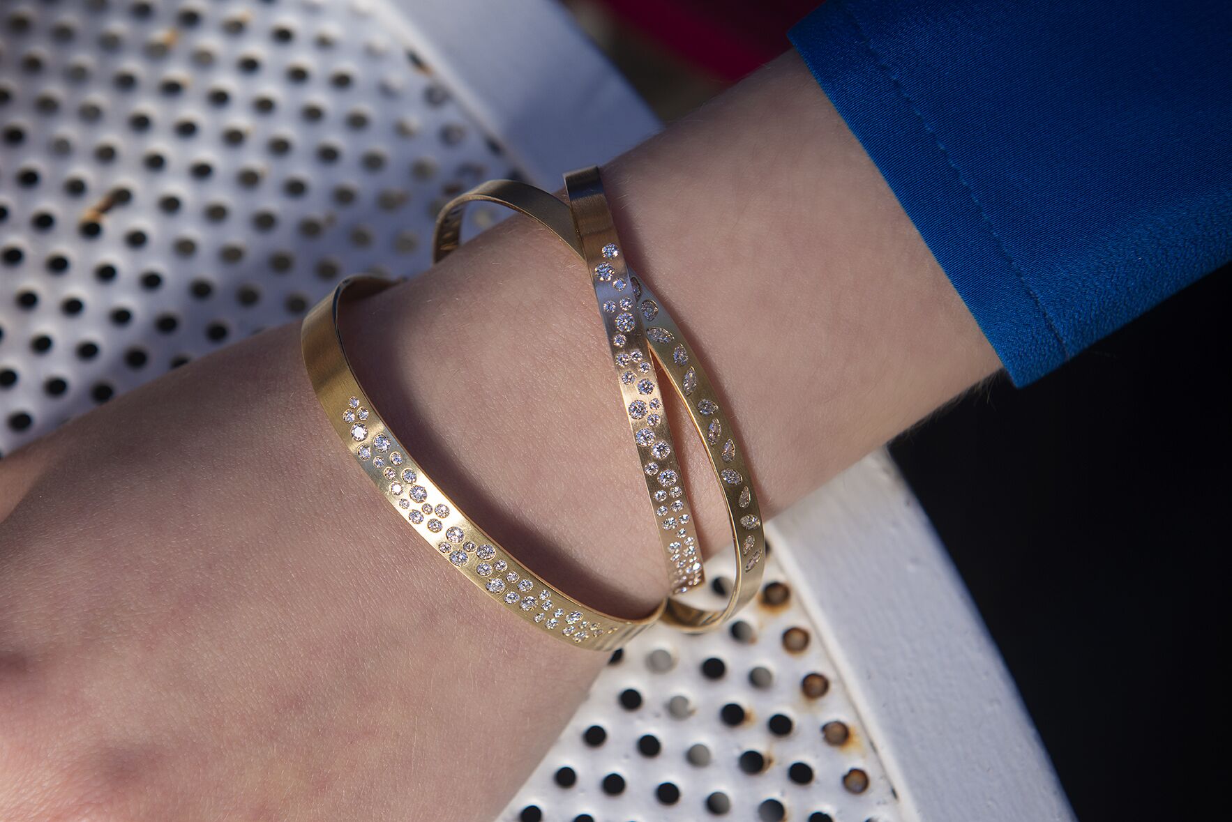 Handcrafted from 18k matte yellow gold with diamonds, you will luxuriate in the way it wraps around your hand.