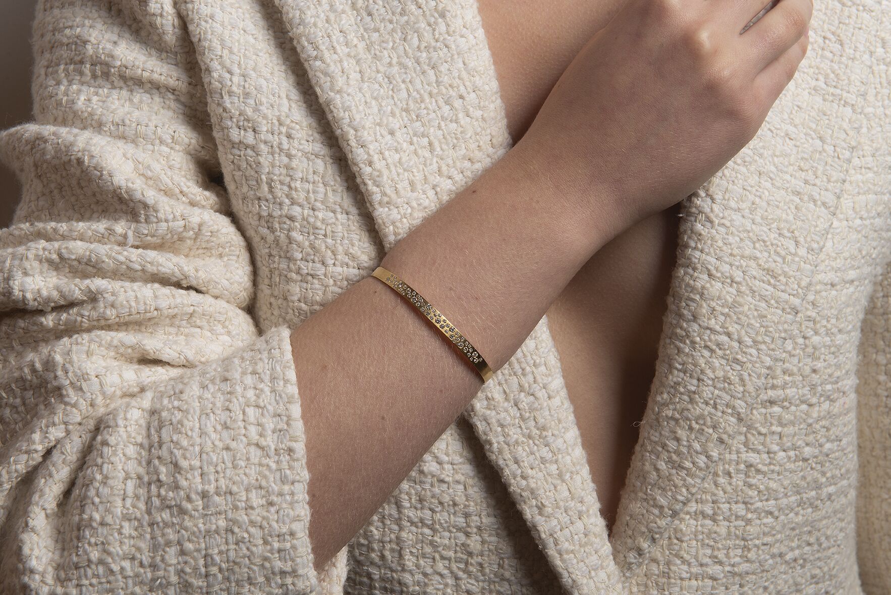 Handcrafted from 18k matte yellow gold with diamonds, you will luxuriate in the way it wraps around your hand.