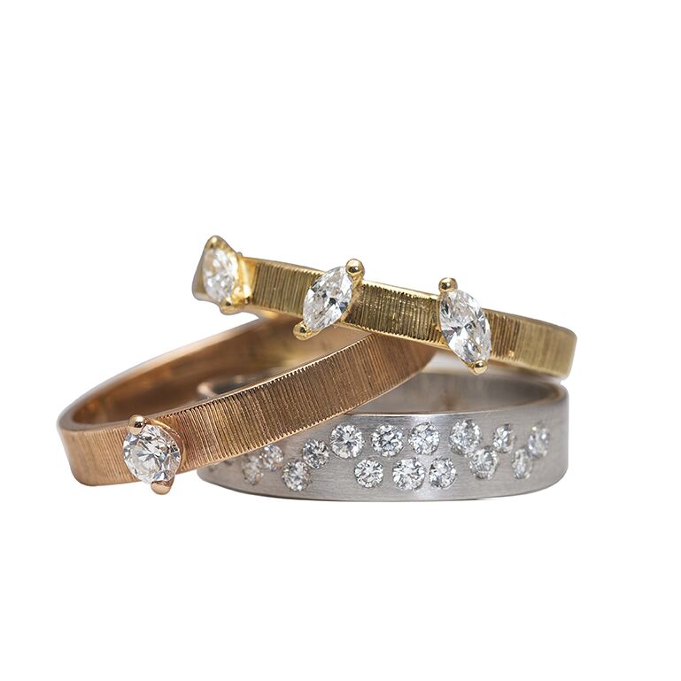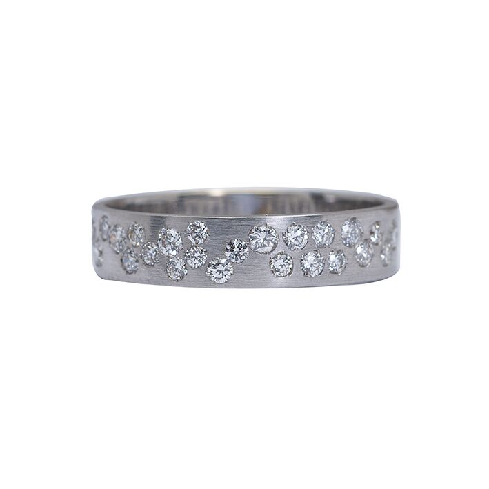 Handcrafted from 18k striped white gold and sparkling with diamonds, you will luxuriate in the way it wraps around your finger.